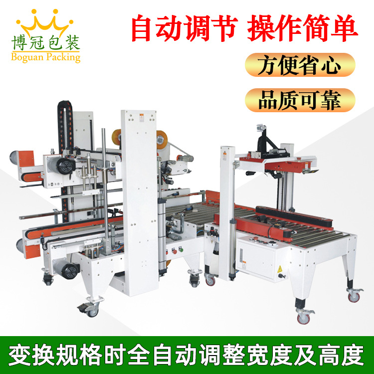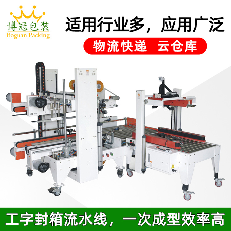 箱蓋折疊機構:這是工字封箱機的關鍵部分之一。它包括多個機械臂或擋板,當紙箱到達折疊位置時,這些部件會按照一定的順序和角度運動,將紙箱的箱蓋逐步折疊起來。例如,先將兩側的箱蓋向中間折疊,然后再將頂部的箱蓋向下折疊,形成 “工” 字形狀。