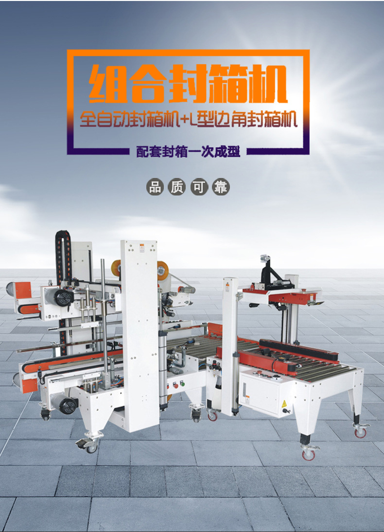 工字封箱機主要是通過機械傳動和膠帶粘貼的方式來完成封箱操作。當紙箱被輸送到封箱機的工作區域時,機器首先會將紙箱的箱蓋折疊起來,使其形成一個類似于 “工” 字的形狀。然后,膠帶供給系統會啟動,將膠帶從膠帶卷中引出。膠帶經過一組滾輪或機械臂,被準確地貼合在紙箱的頂部和底部封口處,通過滾輪的壓力使膠帶牢固地粘貼在紙箱上,從而完成封箱過程。